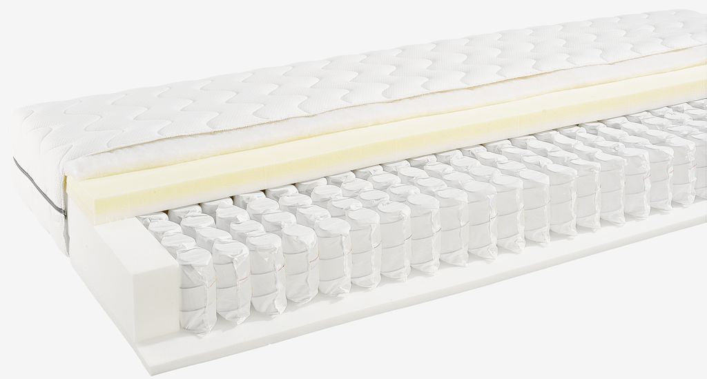 22 cm paksu käännettävä joustinpatja 80x200 cm ja pussijousilla 250/m², jaettu 7 mukavuusvyöhykkeeseen tarjoten ainutlaatuisen ergonomisen tuen. Patja on pehmustettu yhdeltä puolelta painetta keventävällä memory-vaahtomuovilla ja polyeetterivaahtomuovilla ja toiselta puolelta polyeetetrivaahtomuovilla. Memory-vaahtomuovi muotoutuu tarkasti kehon ääriviivojen mukaan. Pestävä joustopäällinen pehmeällä paksulla tikkauksella.