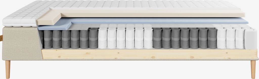 | Mukavuuskerros 1 (ylhäältä katsottuna) | 20 mm Comfort+ -vaahtomuovi 35 kg/m³ |