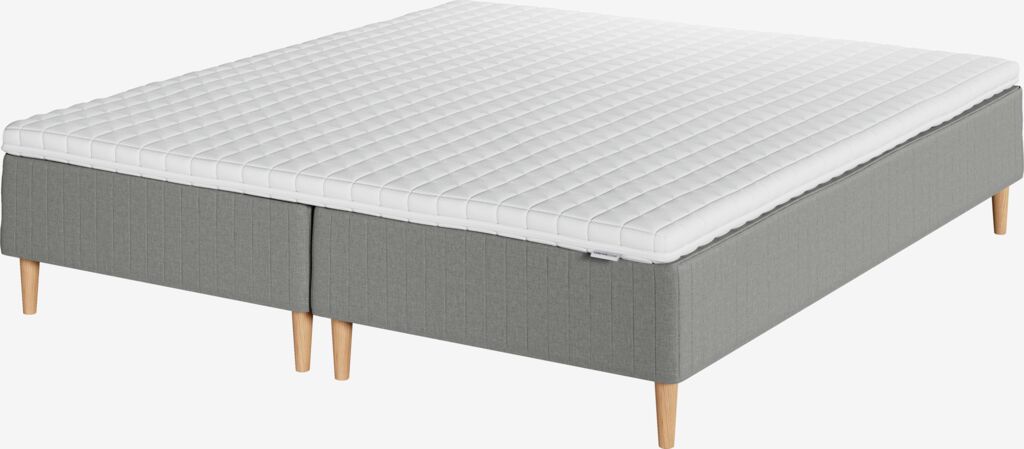 Kaksoisjousitettu runkopatja 160x200 cm, joka on jaettu 5 mukavuusvyöhykkeeseen, jotka tarjoavat tarkan, optimaalisen tuen. Päällimmäisessä kerroksessa on pussijousia 246/m², pehmustettu polyeetterivaahtomuovilla. Alemmassa kerroksessa on bonnell-jousia 150/m². Sis. 5 cm paksun sijauspatjan painetta keventävällä geelivaahtomuoviytimellä, joka muotoutuu vartalon mukaan ja poistaa ylimääräistä lämpöä. Pestävä päällinen 100% polyesteriä (100% kierrätetty) pehmeällä, paksulla tikkauksella. Pohja koostuu 2 runkopatjasta. Ilman jalkoja/taivutejalkoja.