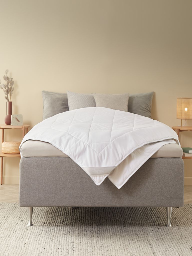 Sopiva kesällä, jos pelkän pussilakanan lisäksi tarvitsee "paksumpaa" peittoa, mutta ei normaalipeiton paksuista kuitenkaan.