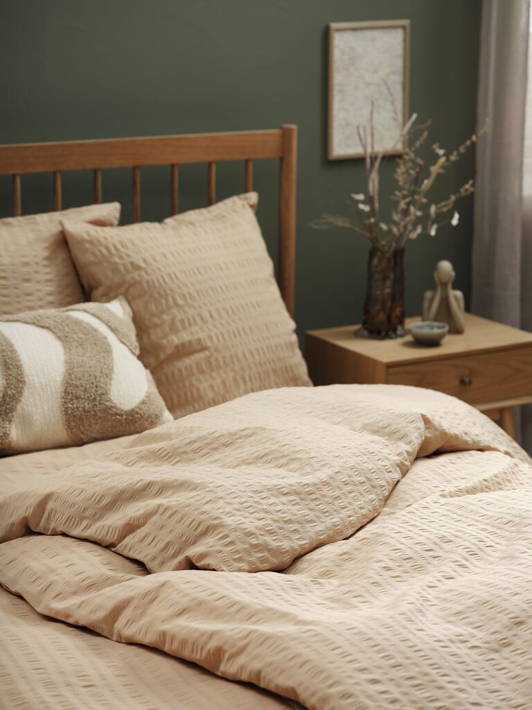 SIGRIDplusKreppipussilakanasetti SIGRID 150x210 vaalea khaki