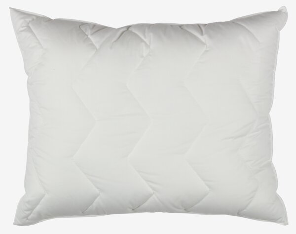 Valkopesunkestävä kuitutyyny 60x50 cm, jossa on kevyt, ilmava täyte silikonoitua spiraalinmuotoista ontelokuitua, 370 g. 65 % polyesteri-/35 % puuvillapäällinen. Tikattu polyesterikuidulla. Pesu 95°C.
