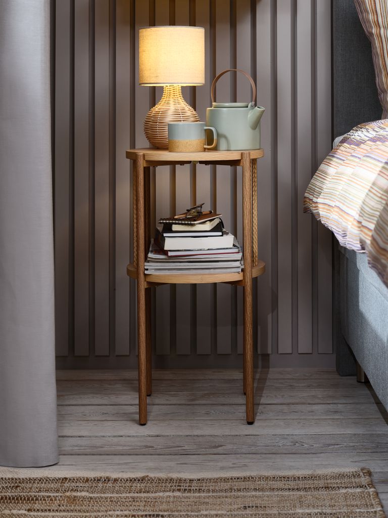 Stolik jest naprawdę estetyczny, ma fajny niebyt duży rozmiar. Bardzo ciężko go wypoziomować, żeby przestał się chybotać. Dodatkowo kolor okleiny na nóżkach odstaje od koloru blatu - nie widać tego mocno, ale jednak to inne odcienie. Poza tym naprawdę ładny stolik nocny, idealnie pasujący do wnętrz nowoczesnych boho.