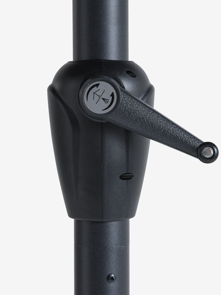 Varjonjalka on ostettava erikseen. Muista valita sopiva, vähintään 35 kg painava jalusta, jotta aurinkovarjo pysyy vakaana tuulisella säällä. Kannattaa myös harkita aurinkovarjon suojan hankkimista suojaamaan aurinkovarjoasi, kun se ei ole käytössä.