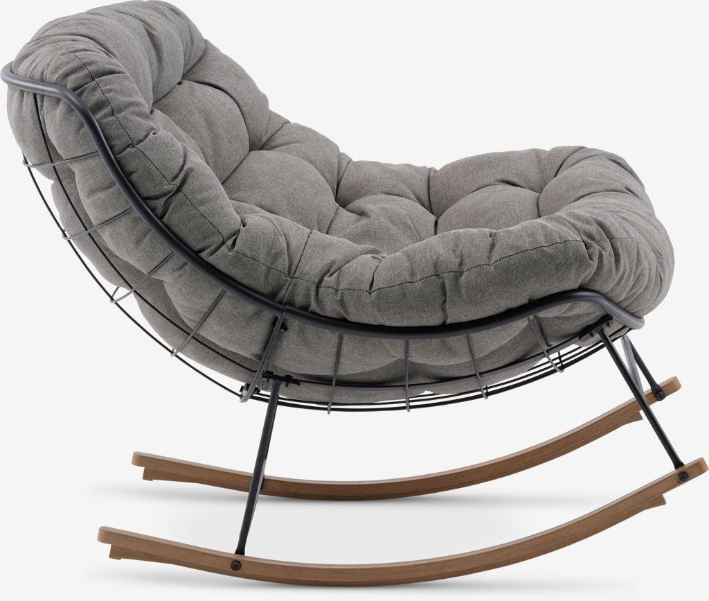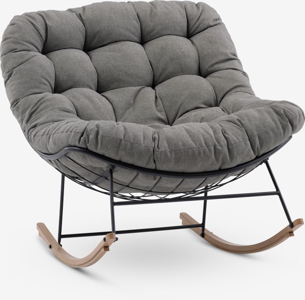 Teräksinen keinutuoli ulkokäyttöön. Sis. laadukkaan pehmusteen kestävällä, struktuuriommellulla päällisellä. L86 x K80 x S105 cm
