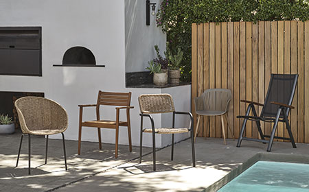 Kesällä on ihana nauttia auringosta ja hyvästä ilmasta omalla terassilla tai parvekkeella. Puutarhatuolin ja loungetuolin avulla sisustat terassia ja istahdat juomaan aamukahvin tai lukemaan iltapäivälehteä. Kokoa puutarhatuoleja terassille omaksi ryhmäkseen ja nauti vieraiden seurasta omalla loungealueella.