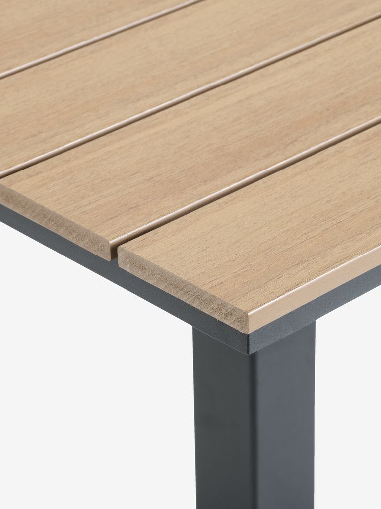 | Materiaali | Runko: Alumiini on kevyt ja tyylikäs materiaali, joka ei ruostu. Alumiini ei vaadi hoitoa ja on helppo puhdistaa kostealla liinalla. Puujäljitelmä on huoltovapaa synteettinen materiaali joka jäljittelee luonnollisen puun rakennetta. Se on tehty muovista, kuten polystyreenistä, joka on kestävä ja vettähylkivä materiaali. Puujäljitelmä on UV-suojattu, mikä takaa värien hyvän säilymisen pinnoilla. Alumiini on kevyt ja tyylikäs materiaali, joka ei ruostu. Alumiini ei vaadi hoitoa ja on helppo puhdistaa kostealla liinalla. |