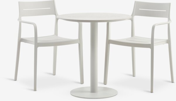 VAMDRUP + INGSTRUPVAMDRUP Ø70 pöytä + 2 INGSTRUP tuolia beige