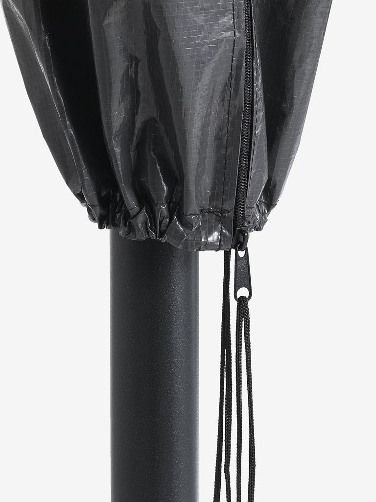 Polyeteenistä valmistettu tummanharmaa aurinkovarjon suoja. Tämä veden- ja pakkasenkestävä suoja suojaa aurinkovarjoasi ankarilta sääolosuhteilta, varmistaen sen pitkäikäisyyden. Se sopii useimpiin aurinkovarjoihin ja sisältää vetoketjun ja nauhan, jotka pitävät sen tiukasti paikoillaan. Ø15/30 x K180 cm
