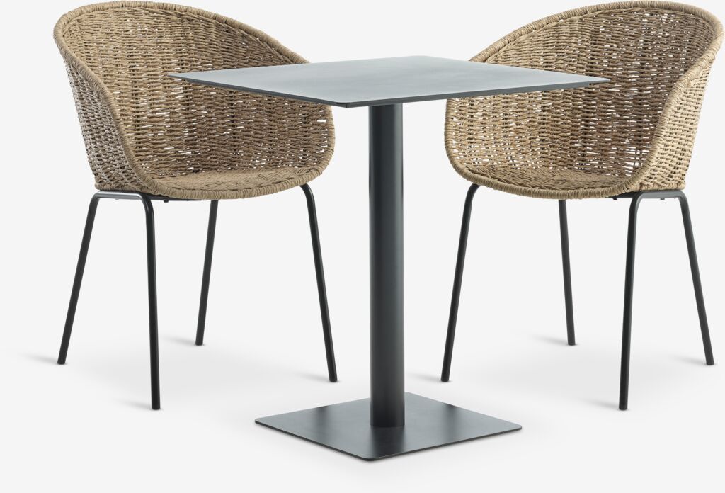 KAPPRUET P65 pöytä musta + 2 TUERNE tuoli luonnonvärinen