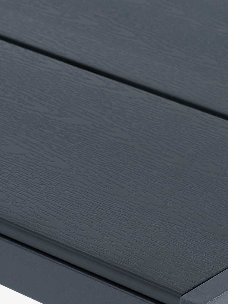 | Materiaali | Runko: Alumiini on kevyt ja tyylikäs materiaali, joka ei ruostu. Alumiini ei vaadi hoitoa ja on helppo puhdistaa kostealla liinalla. Puujäljitelmä on huoltovapaa synteettinen materiaali joka jäljittelee luonnollisen puun rakennetta. Se on tehty muovista, kuten polystyreenistä, joka on kestävä ja vettähylkivä materiaali. Puujäljitelmä on UV-suojattu, mikä takaa värien hyvän säilymisen pinnoilla. Alumiini on kevyt ja tyylikäs materiaali, joka ei ruostu. Alumiini ei vaadi hoitoa ja on helppo puhdistaa kostealla liinalla. |