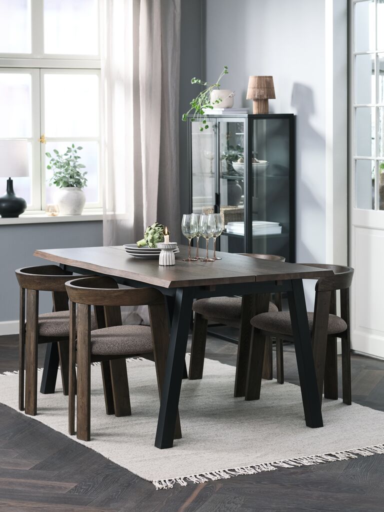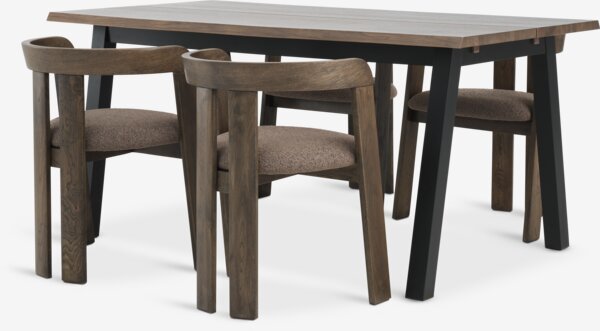 SKOVLUNDE + BOVRUPSKOVLUNDE P160 pöytä tumma tammi + 4 BOVRUP tumma tammi/rusk