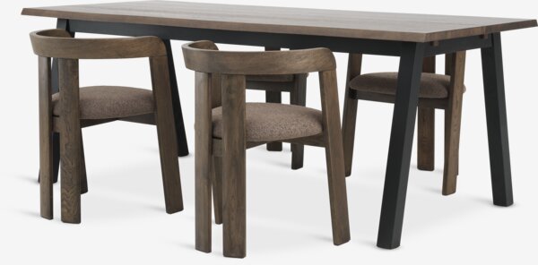 SKOVLUNDE + BOVRUPSKOVLUNDE P200 pöytä tumma tammi + 4 BOVRUP tumma tammi/rusk