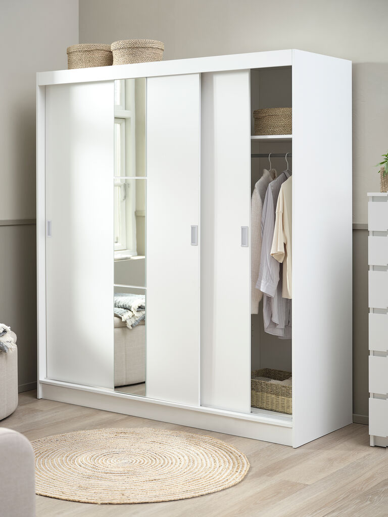 ODDERVaatekaappi ODDER 179x201 3 liukuovea peilillä valkoinen