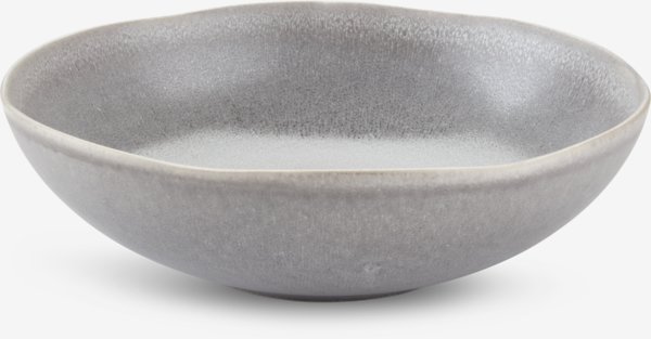 Vaaleanharmaa kivitavarasta valmistettu kulho. Reaktiivinen lasite tekee jokaisesta kulhosta ainutlaatuisen. Kulho on kaksinkertaisesti lasitettu, mikä tekee siitä erityisen kestävän ja estää aterimien aiheuttamia naarmuja. Kulho soveltuu elintarvikekäyttöön ja se on astianpesukoneen kestävä, mikä tekee sen puhdistamisesta helppoa. Ø24 x K7 cm